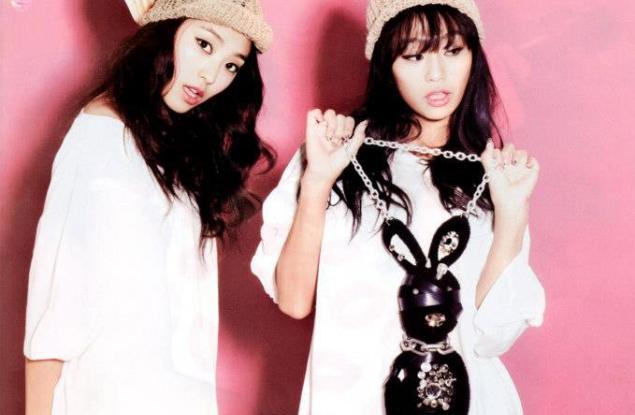 Hyorin and Bora wore clothes that fit in with a “twin-look” concept. In addition, the pictures show the two that make them look like they are mirror images of each other.